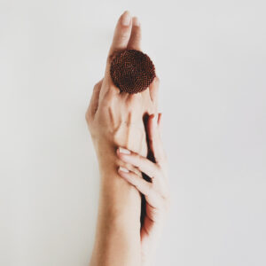 Tejido sobre una base Autoajustable, de cobre bañada en oro de 24 quilates. Diámetro de elongación mínima 1.8cm y máxima 2.8cm