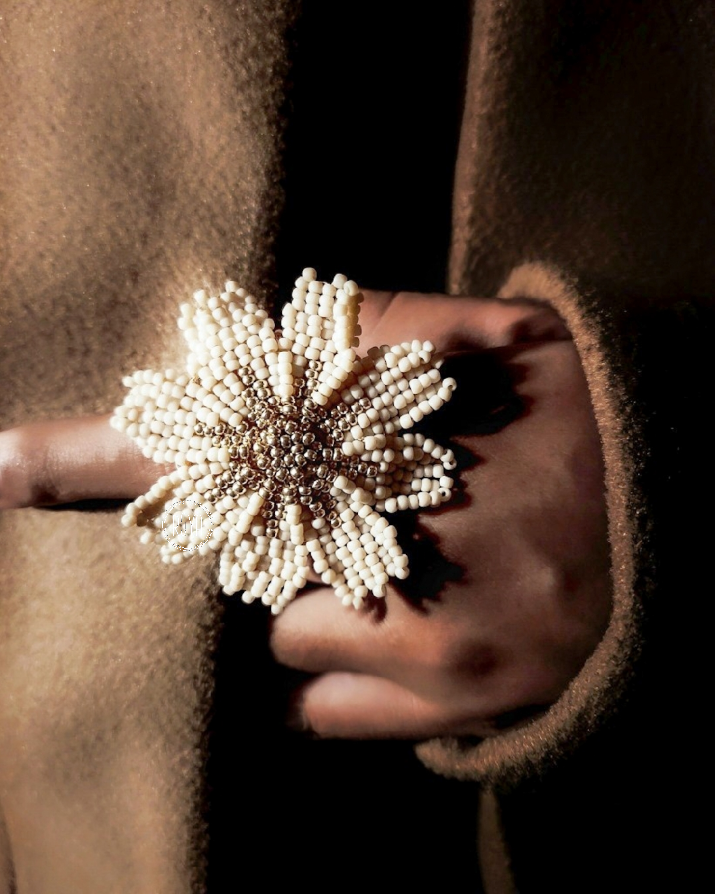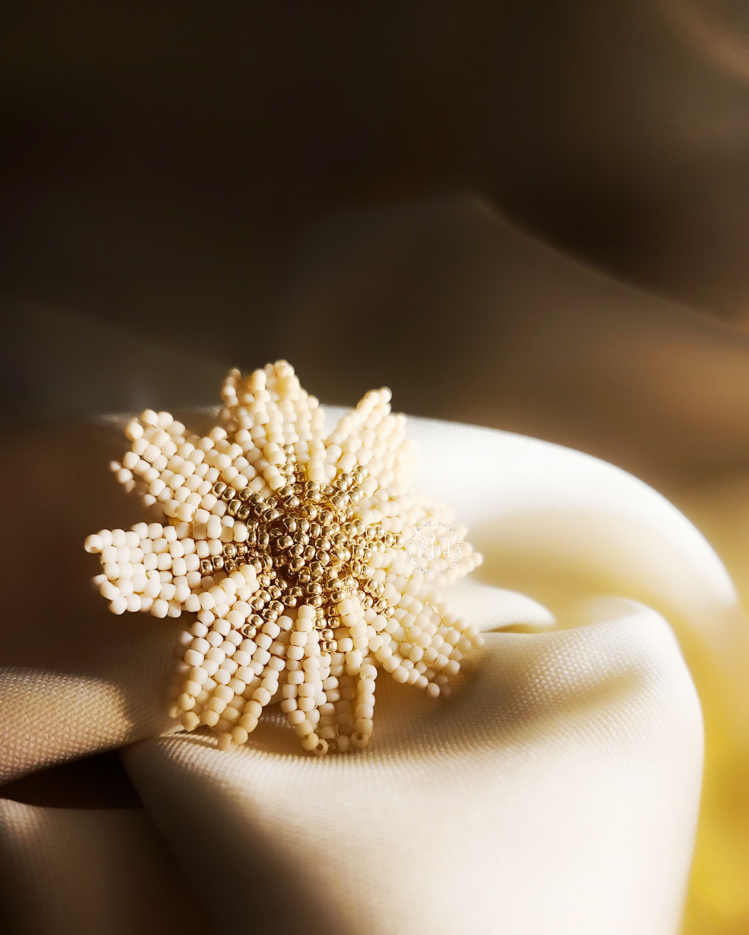 Anillo ajustable con diseño de flor, tejido a mano en mostacilla japonesa