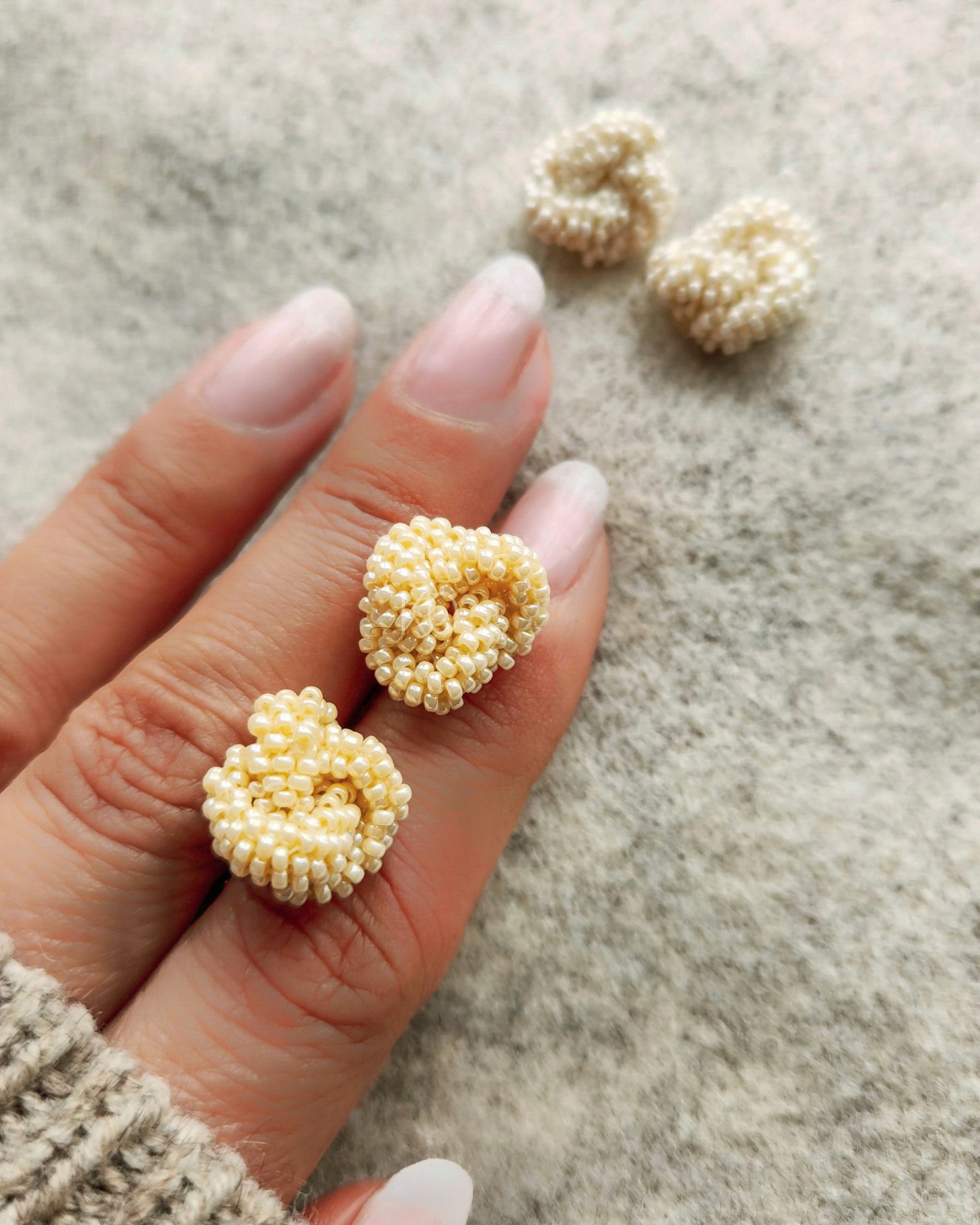 Tejido a mano con mostacillas Miyuki japonesa #15, tono Crema Perla. El tejido mide