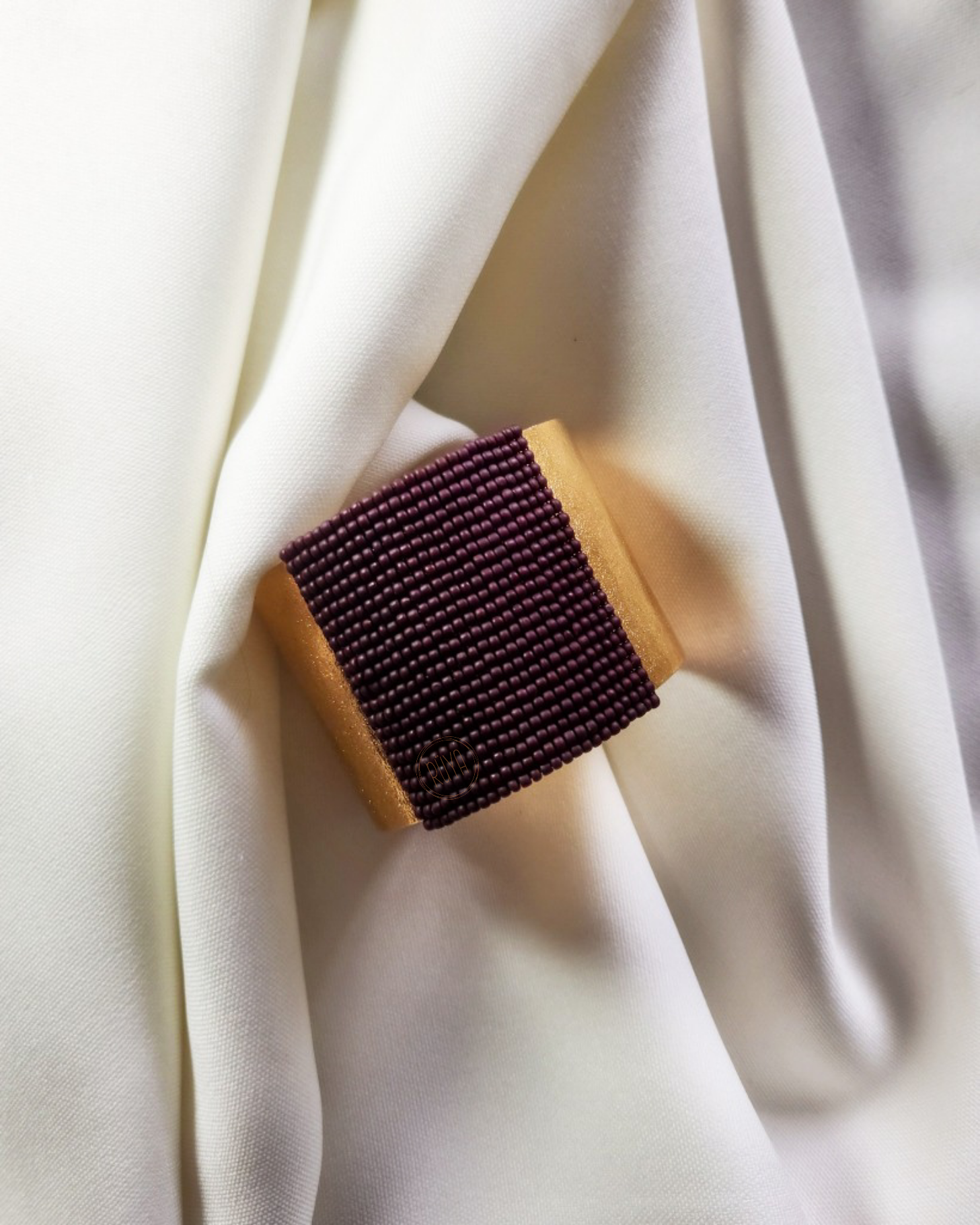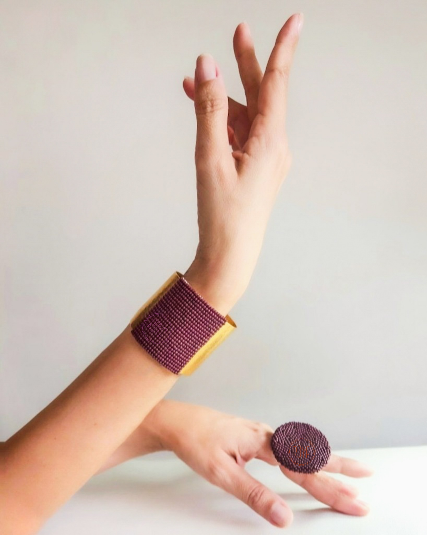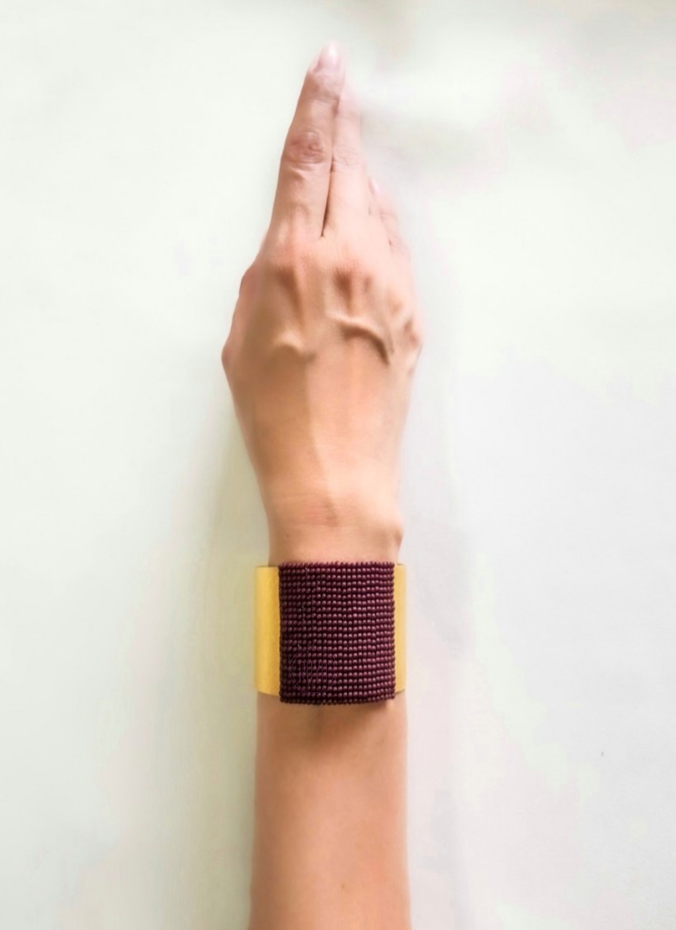 brazalete de bronce bañado en oro de 24 quilates, realzado con la delicadeza de miyuki color borgoña